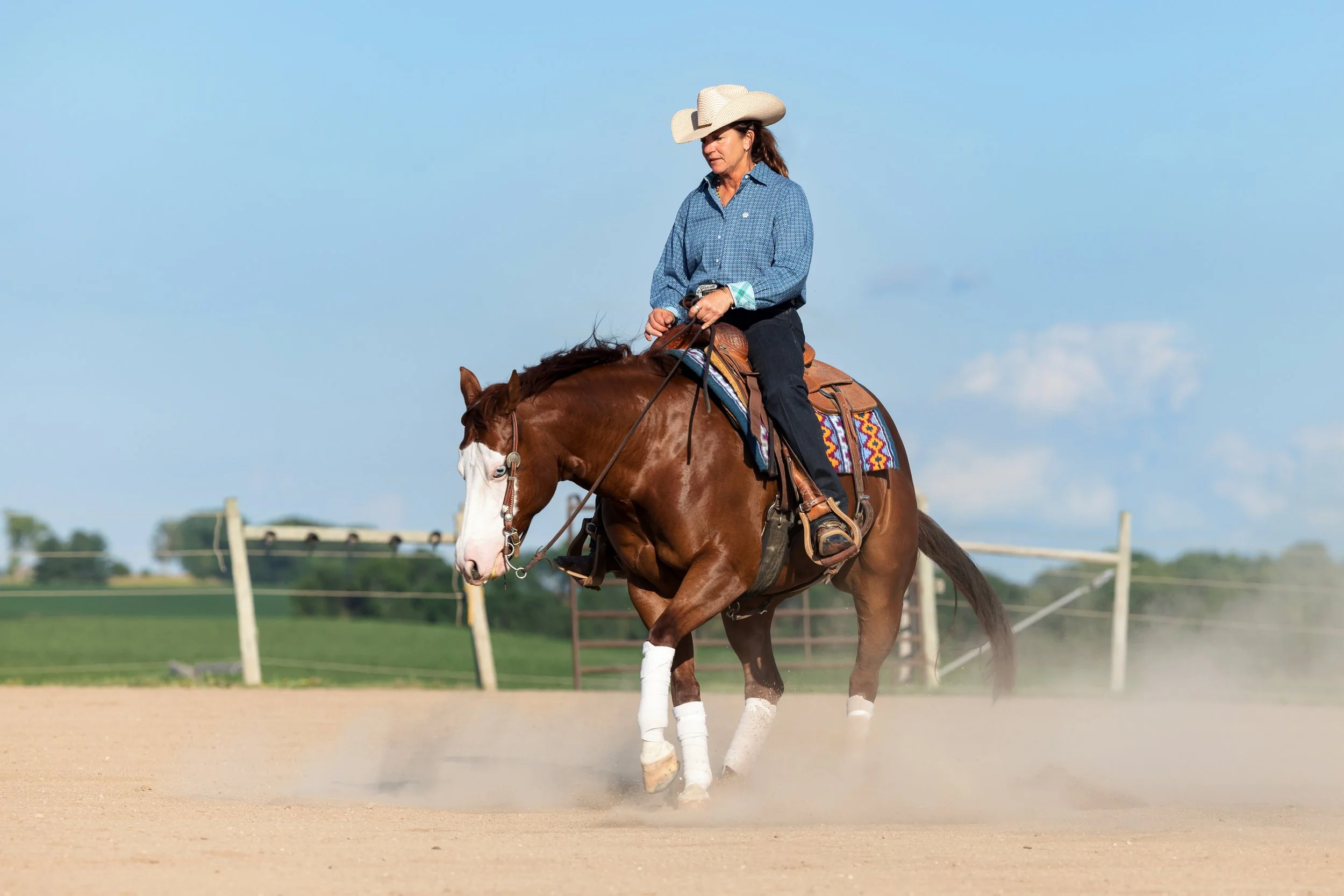 After graduating High School, Nettie attended the University of Wisconsin-River Falls. It was at UWRF that Larry Kasten introduced her to reining. Nettie was thrilled to be a part of the colt training program, which placed heavy emphasis on the philosophies of Ray Hunt.